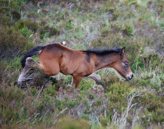 Capa castaña con raya de mulo simple y cruzada y cebraduras en antebrazos.