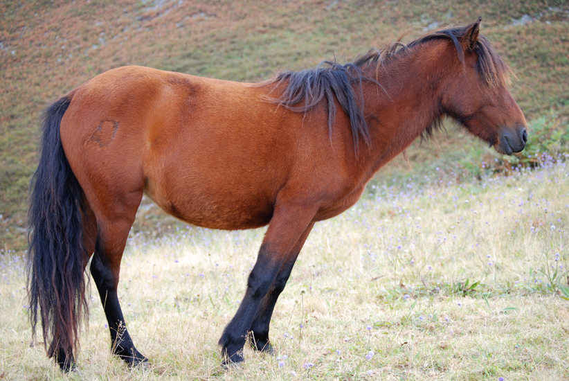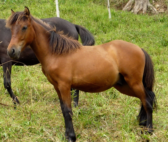 Capa castaña con raya de mulo y cebraduras en antebrazos.